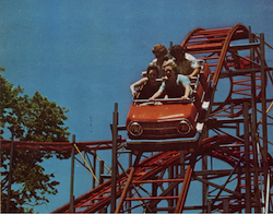 Until a few years ago there were at least a handful of Schwartzkopf Wildcats in operation in the United States. Today, the closest operating model to Schussboomer is the Wildcat currently operating at Adventure Park USA in Monrovia, MD. The Schussboomer itself was scrapped after it was removed from Worlds of Fun in 1984.