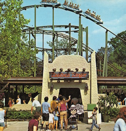 Of course, the Zinger was complete with numerous features that made its experience unforgettable. A ride began in the station which is still in the park, today serving as the entrance to Dinosaur's Alive. In 1973, the queue rails were tight and compact, and unlike coasters of today, there were no loading gates. Riders boarded one of Zingers three cars, where riders found no seatbelts or lap bars, and riders didn't sit side by side either. The Zinger cars were configured in a bobsled-style that left you sitting in the lap of the guest behind you. It made for many great memories of rides with parents, and later boyfriends and girlfriends. (Whizzer at Six Flags Great America has since installed seat belts in its cars, but still operates the same bobsled-style cars)