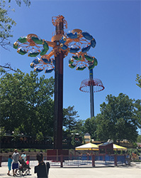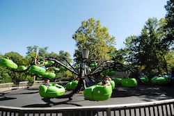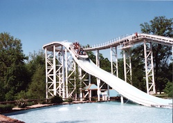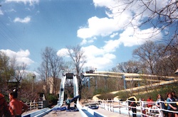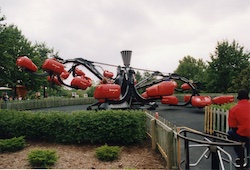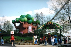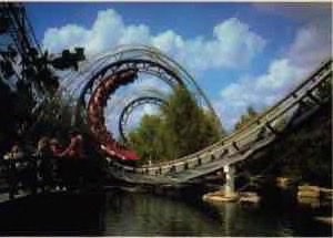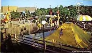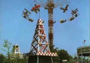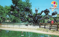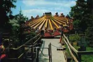 Worlds of Fun Gone but Not Forgotten: The Defunct Rides & AttractionsHere you will find a list of most of the removed/past attractions from Worlds of Fun's past. For more information you can click on the attraction's name to be taken to a specific attraction page with more information, photos and in some cases video. Please be aware that not every attraction has a specific page at this point. Thank you for your patience! ScandinaviaSchussboomer 1973-1984 ![]() A compact coaster designed by Anton Schwartzkopf, and classified as a "Wildcat" style coaster. Schussboomer's name refers to the "Schuss" of a downhill skier. Schussboomer was bought by the park used, and was a portable, fair-style model (meaning it was meant to be able to be moved from place to place). Riders rode in small four-seat cars as opposed to the more common coaster train. It was removed after the 1984 season and its location is currently occupied by The Grand Carousel. Ski Heis 1973-1987 ![]() An incredibly popular family ride, Ski Heis was the Scandinavian hub for this one-way aerial gondola ride. Manufactured by Von Roll of Switzerland, a company famous for manufacturing ski lift rides, Ski Heis operated with four-seat semi-enclosed cars. The motor for the Ski Heis was located in Scandinavia, while the counter-weight was located in Americana. The station for both hubs for this ride are currently still located in the park, Ski Heis station is currently used as a picnic facility, Tivoli East. Ski Heis, like most rides was inherently very safe, but was removed due to liability issues. Victrix 1973-1992 ![]() Victrix was one of two full size ship models, and one of over a dozen items, purchased by Hunt Midwest from the MGM Backlot auction in 1971. This full-sized, four-masted schooner (think pirate ship) was used in many MGM films, but was most notably used for "All the Brothers Were Valiant" in 1953. When it came to Worlds of Fun it was used for many years as a man o' war firing range where guests could fire mini-cannons at floating targets. It was removed due to rotting and deterioration of the structure. Finnish Fling 1973-2017 ![]() This small footprint of a ride also opened with the park on May 26, 1973. Fling was originally manufactured by Chance Rides of Wichita, Ks. and was known more universally by its model name "Rotor". At the time of it's removal following the 2017 season, it was the last Rotor operating in the Cedar Fair chain of parks. That wasn't always the case though, in the 1960's and 70's almost every park had a Rotor. The principle of the ride was very basic, riders board inside a cylindrical drum, and stand with their backs towards the wall. As the drum begins to spin it increased to a maximum speed of 33 RPM and the floor would drop out leaving riders "stuck" to the wall. Oriental Octopus 1973 - (1984 Tailspinner/1998 Octopus) 2014 ![]() Along with Bamboozler, Octopus was one of the most moved and re-named attractions to be located at Worlds of Fun. Oriental Octopus opened with the park in 1973 and was painted all black. It was moved to the Aerodrome in 1984 to replace the Barnstormer which had been removed the prior year, in 1983. Once it was moved it was renamed "Tailspinner" and re-painted in the multi-color "balloon" paint scheme. When Pandamonium replaced Aerodrome in 1987 Tailspinner remained in the section (it was renamed Octopus) but was repainted a red "tomato-plant" color scheme". When Bearenstain Bear Country was added in 1997, Octopus was removed from the park for one season, but was re-added to Scandinavia in 1998 and was retained the name "Octopus", it also received new cars at this time that were painted lime green. It remained in Scandinavia until 2014 when it was removed permanently. Its parts are currently being used at the Monster at Valleyfair! in Minnesota. Kopter 1973 - 1976 ![]() Kopter was one of Worlds of Fun's first children's rides, and consisted of small child-sized helicopters that circled a central hub. It was manufactured by Allan Hershchell of New York. With the introduction of Hampty's Haven in 1977 Kopter was removed. It was originally thought to have been modified into Bounce-A-Roo's, but it is believed now to have been swapped with King's Island for their Kikki Kangaroo ride instead. Half Pint's Peak 1977 - 1986 ![]() In 1977 Scandinavia became home to the park's first area devoted to children, as part of this new development was half pint's peak, a foam yellow mountain that kids could climb and slide down. Half Pint's Peak also encompassed a small play area complete with ball pit, and foam punching bag maze. It was located approximately were Tivoli Central is today. Micro Moto Bahn 1977 - (Road Rally) 2010 ![]() A small, circular children's ride manufactured by Hampton Rides, it was located in Scandinavia added to Humpty's Haven in 1977. Unlike the other Scandinavian children's rides it remained located in Scandinavia until 2001, it was located near Tivoli Central picnic facilities. It was finally moved to Camp Snoopy in 2001 and remained there until it was removed in 2010. Humpty's Haven 1978-1986 ![]() Along with Half Pint's Peak was Humpty's Haven, which featured a small theater area, complete with marionette show, miniature rides, (Boat Tank still operates in Planet Snoopy), and various nursery rhyme statuary (Humpty was predominate). Tot's Yachts 1978 - (Peanut's Yacht Club) - 2022 ![]() A long standing Worlds of Fun's children's ride first introduced in Scandinavia in 1978. Small children could ride in one of six four-seat boats that rotated around in a circle. Riders could also ring their individual boat's bell. Tot's Yachts was one of the first children's rides to be moved being relocated in 1991 to Pandamonium to make way for Fjord Fjarlane. It was re-named to Peanut's Yacht Club in 2001 with the addition of Camp Snoopy. Viking Vheel 1982 - (Head over Wheels) 2010 ![]() A small children's ferris wheel manufactured by the Theel company, it was originally lo