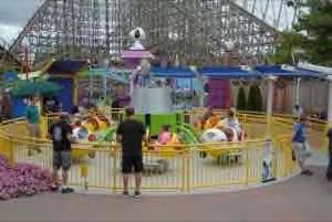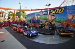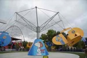 Worlds of Fun Tour of the Park 2025 EditionScandinavia Africa Europa Americana  Planet Snoopy East Asia/The OrientPlanet SnoopyHistorical Tour of the Park Versions 2017 Edition | 2018 Edition | 2019 Edition | 2022 Edition | 2023 Edition | 2024 Edition Snoopy vs Red Baron 1974-current ![]() This circular airplane ride has been popular since it's opening in 1974. Children under 54" can "fly" their own plane, on this circular plane ride, complete with 8 planes, fitting two riders each. Riders can control the height of their plane. Red Baron was manufactured by Allan Herschell and opened in the Scandinavian section of the park in 1974, marking it as Worlds of Fun's first ride expansion after the park’s opening in 1973. When Aerodrome opened in Americana in 1978, Red Baron was moved but retained the same name. When Aerodrome became Pandamonium in 1987, Red Baron was renamed to Pand-Am Airlines (a tribute to Pan Am Airlines); with Bearenstain Bear Country in 1997, it was renamed Kiddy Hawk Airlines. Finally, in 2001, with the renovation to Camp Snoopy, it became known as Red Baron once again. An inside joke among Ambassadors at the park is that during the time the area was known as Camp Snoopy the sign for Red Baron could be misread as Red Bacon, and became the ride's "nickname". Guests must be 36" or taller to ride Red Baron, and must be less than 54" tall. Cosmic Coaster 1993 (re-named 2012)-current ![]() Cosmic Coaster is a small, overall children's coaster located across the midway from Red Baron. Cosmic Coaster was manufactured by Pinfari of Italy and was previously known as Wacky Worm but was renamed and re-themed to Cosmic Coaster in 2013. As part of the renovation, the worm-themed train was re-themed to a rocket, while the gigantic apple was re-themed to appear like a planet. Guests under 42" must be accompanied by an adult. Snoopy's Space Buggies 2016-current ![]() A small circular ride, with 6 cars, seating up to four people each, this small ride rotates with each individual car "jumping" with each turn. Space Buggies is a great ride for parents and children to ride together as adults are allowed to ride, and must accompany any child less than 36" tall. Space Buggies was added to Planet Snoopy in 2015 and was manufactured by Zamperla Rides; it is more commonly known as a Jump Around. Guests under 36" must be accompanied by an adult. Linus Launcher 2016-current ![]() A slightly more thrilling ride targeted towards tweens and their families, Linus Launcher is a circular ride that riders experience in a "lay down" position and allows them to experience a type of "free flight" as the ride rotates and side by side cars move in a wave-like fashion. Linus Launcher was added in 2016, and manufactured by Zamperla Rides. The ride is mostly commonly referred to as a Kite Flyer; Worlds of Fun's version allows for 16 riders per ride cycle. Guests must be 42" or taller to ride alone, guests 36" to 42" may ride if accompanied by an adult. Snoopy's Junction 2016-current ![]() Snoopy's Junction is a small, family-size train ride, which is compact but can be ridden by all ages. Snoopy's Junction was manufactured by Zamperla Rides, which refers to this ride as a Rio Grande Train, it was added with the 2016 expansion of Planet Snoopy. Guests under 36" tall must be accompanied by an adult. Snoopy Boutique 1997 (re-named 2011)-current ![]() Located down the walkway from Red Baron is Snoopy Boutique, a large gift shop featuring a variety of Snoopy and Peanut's related merchandise. Snoopy Boutique is adjacent to Peanut's Showplace. The structure for the boutique was originally built in 1997 as part of the Bearenstain Bear Country expansion and was updated slightly in 2001 with the renovation to Camp Snoopy it became Beagle Bay Outfitters. In 2011, with the modification to Planet Snoopy it was re-named again to Snoopy Boutique, it has remained relatively unchanged since then. Peanut's Showplace 1978 (re-named/structurally modified 2001)-current ![]() A small indoor theater that features a variety of Peanut's Character shows and character appearances throughout the day and season. As the theater is completely indoors, it's a great place to either warm up or cool down depending on the time of year. Peanut's Showplace location has been home to a variety of theater experiences since the Aerodrome was built in 1978 and the Flying Circus Theater was built as one of its attractions. The Flying Circus Theater hosted a variety of shows over the years, including Delores Hadley’s Marionettes until 1982, Rainbow Brite, Cabbage Patch Kids and Shirt Tales in the 1980's, and Rain Forest Follies Tropical Bird show in the 1990's. In 1997, the theater was enclosed to become the Bearenstain Bear Country Museum, and was transformed back into a theater in 2001 with the introduction of Camp Snoopy. Snoopy's Rocket Express 2011-current ![]() An aerial tramway that takes up to four riders in a rocket-shaped car on a quick, elevated tour of Planet Snoopy. Manufactured by Zamperla rides, Snoopy's Rocket Express was added in 2011. Riders must be at least 36" tall to ride, and those under 42" must be accompanied by an adult. Coca-Cola & ICEE Refresh 2014-current ![]() Guests to Planet Snoopy can refill their souvenir drink bottle at this Coca-Cola Refresh station located across from Rocket Express. Peanut's 500 2011-current ![]() Riders board one of eight Nascar-themed racing cars that rotates around an oval track and "whips" riders around the two corners at each end. Manufactured by Zamperla Rides and added in 2011, Peanuts 500 is a new take on the very old "Whip" style ride by allowing a small thrill to an otherwise small footprint of a ride. Guests under 36" must be accompanied by an adult. Flying Ace Balloon Race 2011-current ![]() Guests can get an aerial view of Planet Snoopy aboard the Flying Balloon Race, a 38-foot tall tower ride. Guests board one of 8 balloon cars, which can seat up to four, which are raised up the tower